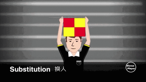 当有一方要求换人时,靠近替补席的助理裁判应该双手持旗子两端。