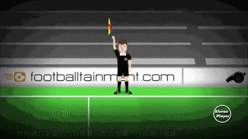 然后通过举旗的方向来展示应该有那一方获得任意球。