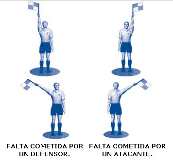 犯规的不正当行为: 助理裁判员发现自己在自己附近范围队员有犯规行为,而裁判员未察觉到时,助理裁判员可将旗上举并加以摇晃动作。当裁判员见到旗示并令比赛停止后,助理裁判员应将旗斜上举,指示踢任意球方向。
