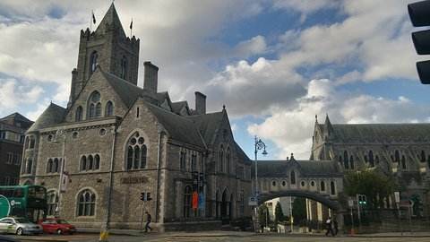 天主教教堂,又高又尖。教堂顶部都有十字架标志。