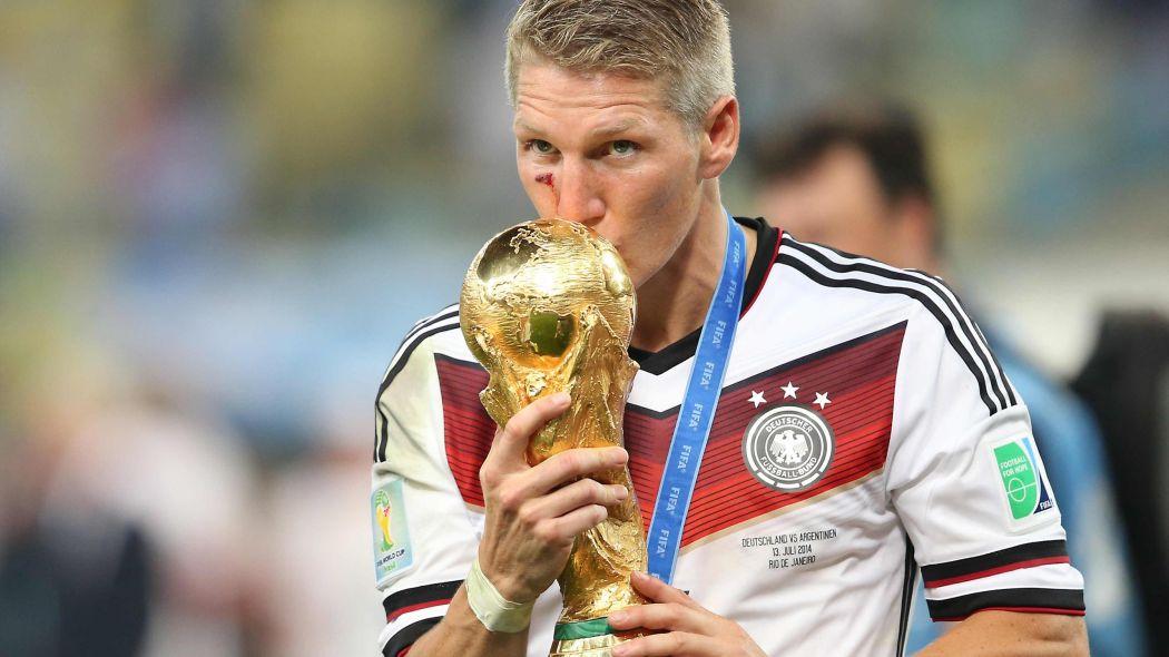施魏因斯泰格辉煌的职业生涯中,曾效力过曼联、拜仁等豪门球队。此外,他共为德国国家队出场120次,贡献24粒进球。2014年,随德国国家队捧起了世界杯冠军奖杯。(完)