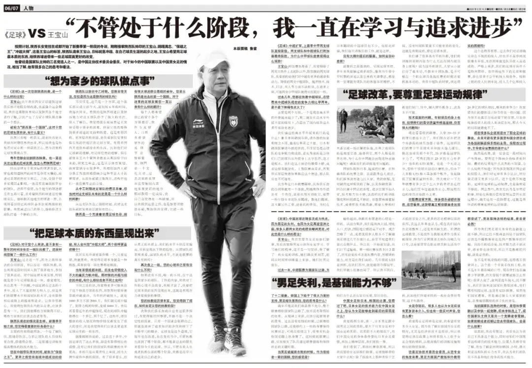 王宝山:过去这一年,因为之前和泰达的合同原因,所以没在一线队执教,我也利用这段时间深入到了很多地方,参加了很多活动。对中国足球未来发展,特别就是青少年足球根基这一块,感觉堪忧。我在思考一个问题,中国足球在过去的十多年,投入了大量的财力和人力,但是我们的联赛水平和国家队的水平,没有取得相应成绩上的提高和进步,让我非常揪心。我觉得包括我在内的从业者,应该多思考一下,我们到底哪些方面做得不好,哪些方面我们应该去改进等等。