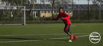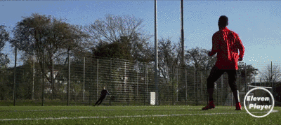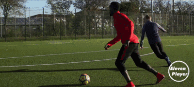 现在我们已经知道了所有的有力条件,我们可以选择拉弧线绕过他或者大力射门打穿他。