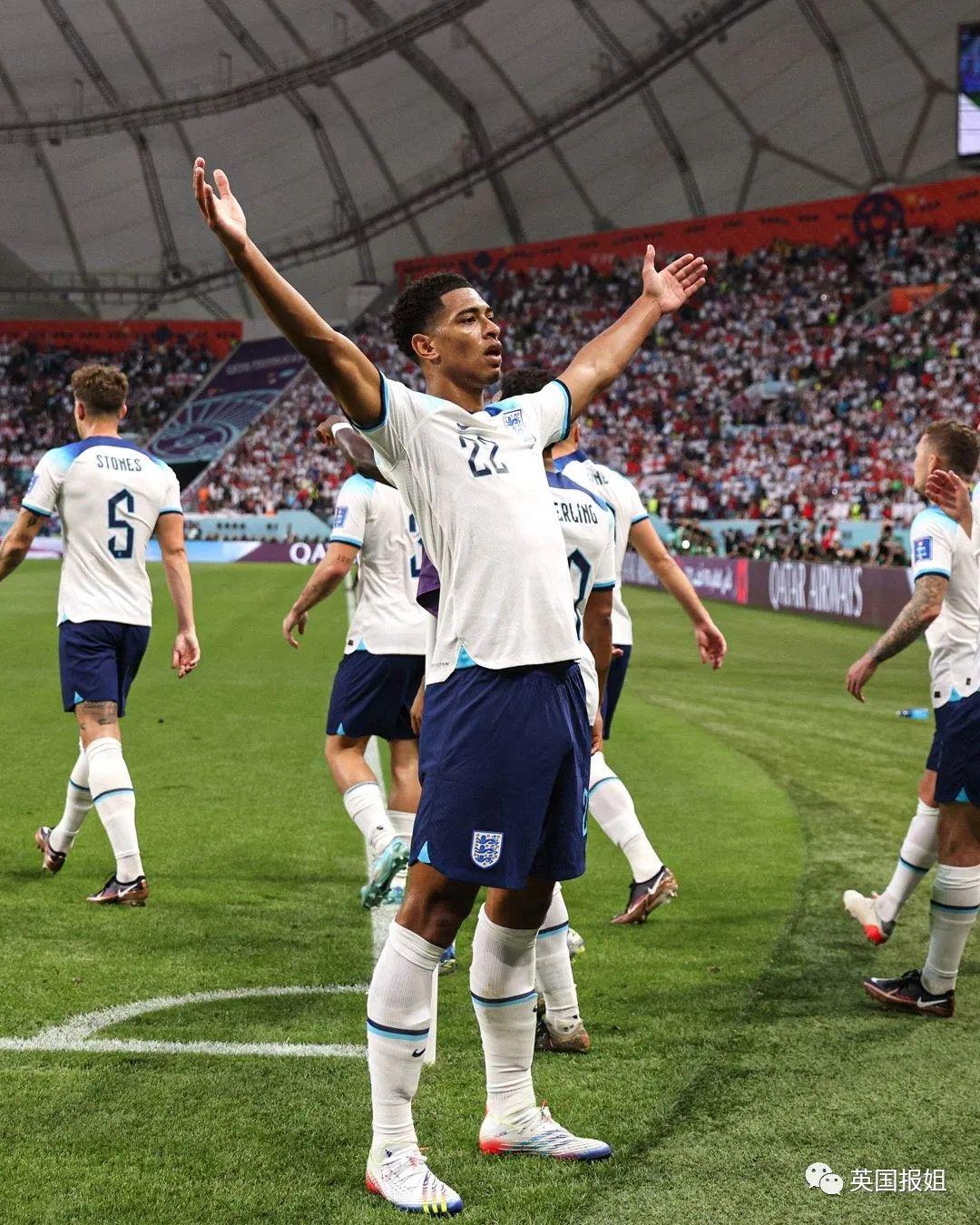 比他小一岁,2003年出生的英格兰队中场球员祖德·贝林厄姆,在英格兰vs伊朗的比赛中也有出色表现,同样打进了自己的第一粒世界杯进球。