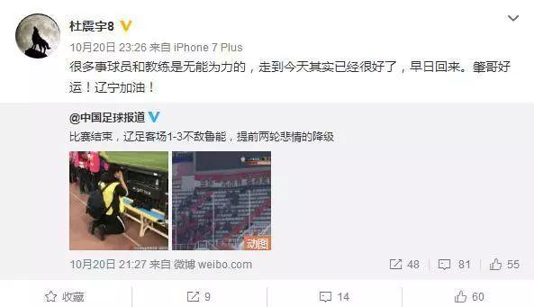 除了延边,更早提前锁定降级名额的辽宁足球俱乐部也牵动了无数人的心。一众曾经的辽足大将都发微博,或感慨或怀念或坚守。