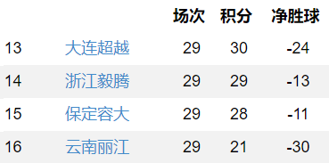 本赛季两支中超的降级名额已经揭晓。同样在今天下午,中甲冠军和第一支降级的球队也提前产生。