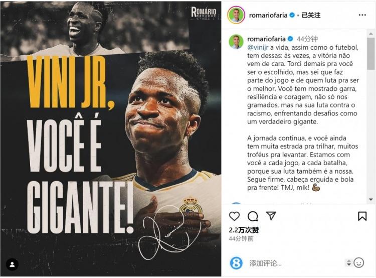 罗马里奥发文安慰维尼修斯