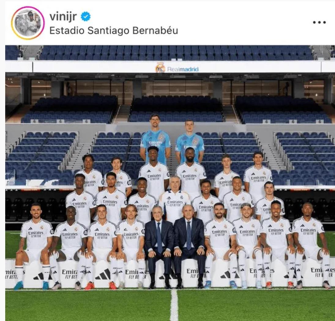 北京时间今日,维尼修斯也在个人社媒账号上晒出了俱乐部本赛季一线队的合照,并配文写道:“我们团结在一起!”