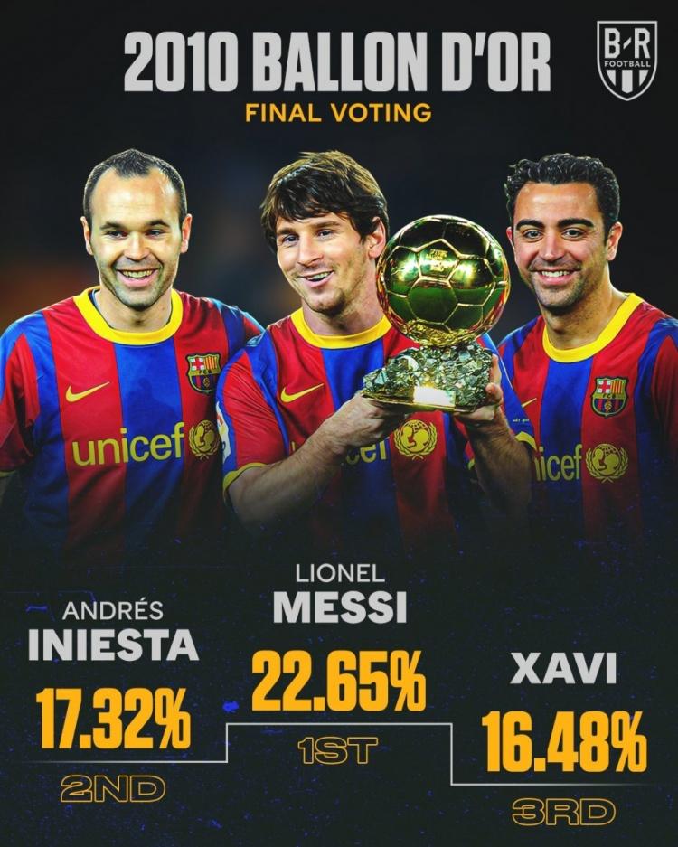 这是金球奖历史首次,也是唯一一次有三名来自同一俱乐部青训营的球员包揽单届金球奖前三甲。