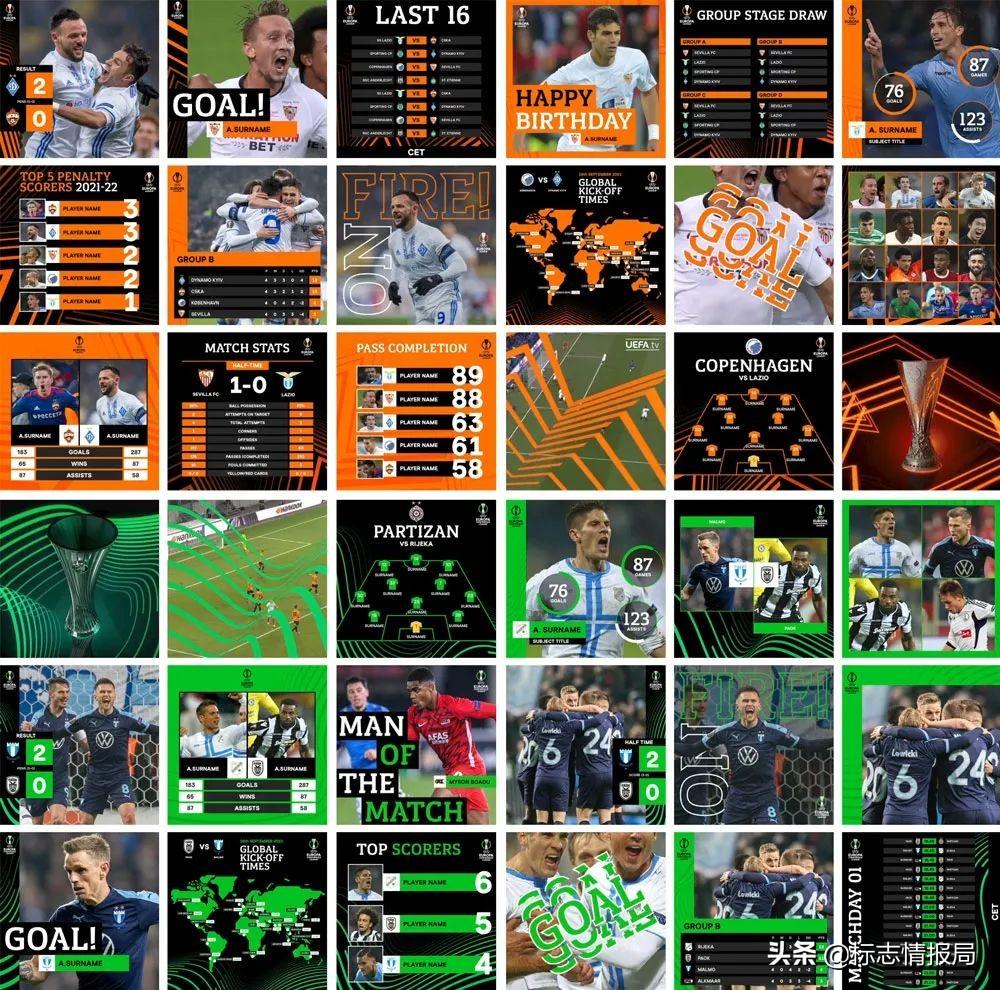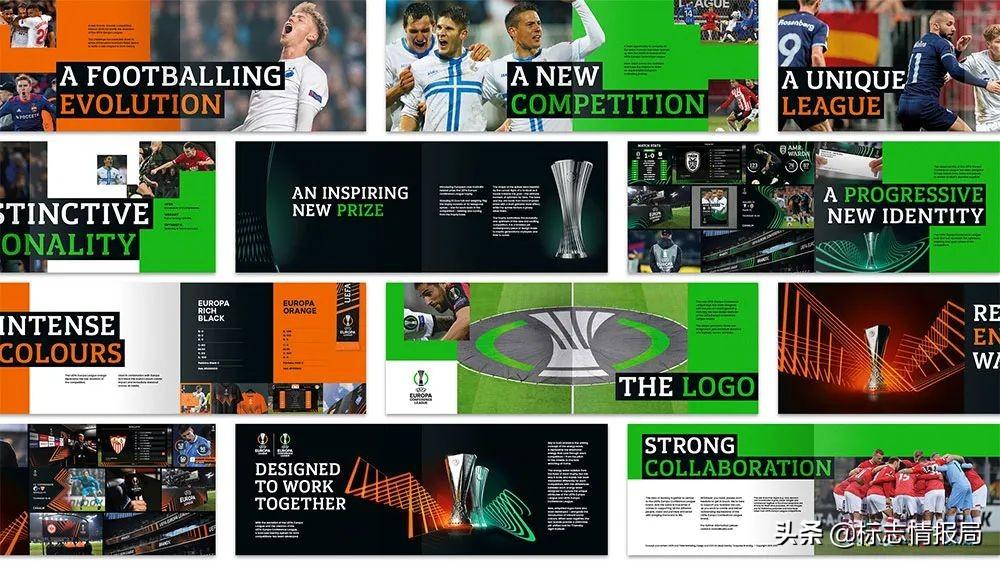 在整体造型上,与去年年底启用的欧足联欧洲协会联赛(Europa Conferenc League)的新LOGO完成了统一。现在,橙色代表欧洲联赛,绿色代表欧洲协会联赛。