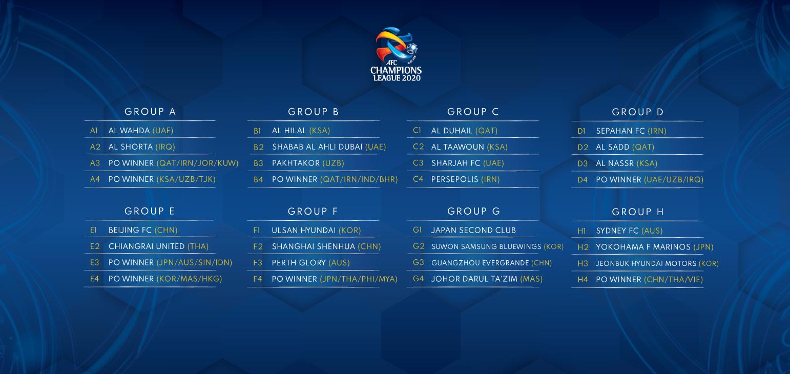 2020赛季亚冠联赛小组抽签揭晓。网络截屏