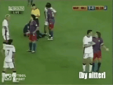 巴耶斯特罗斯下场的时候,突然转过身来给了普约尔的左脸颊一记耳光,结果旁边小罗暴怒,要上前理论,但是被普约尔劝开了。于是在普约尔的冷静和大度之下,事态没有进一步扩大。