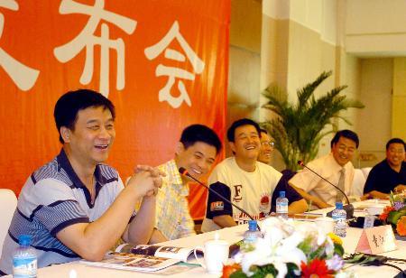 2005年7月 辽足1-1中邦 图为徐明、赵本山与中邦董事长卫平讨论比赛情况
