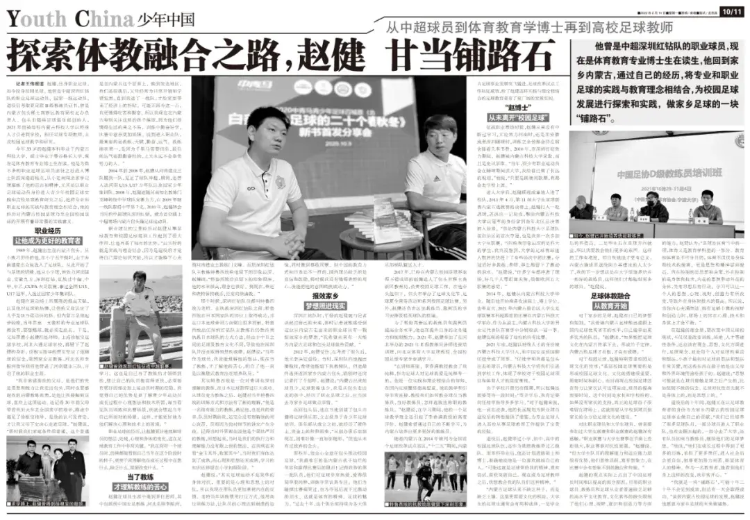 退役后,赵健带过小学、初中、高中的校园足球队伍,还作为助理教练带过乙级队。而本科毕业后,他还计划进修硕士和博士,准确地说他是一位喜欢挑战自己的人。“可能这就是足球带给我的精神,喜欢尝试、喜欢突破自己。现在成为足球教师之后,我想教会我的队员们这种精神。”