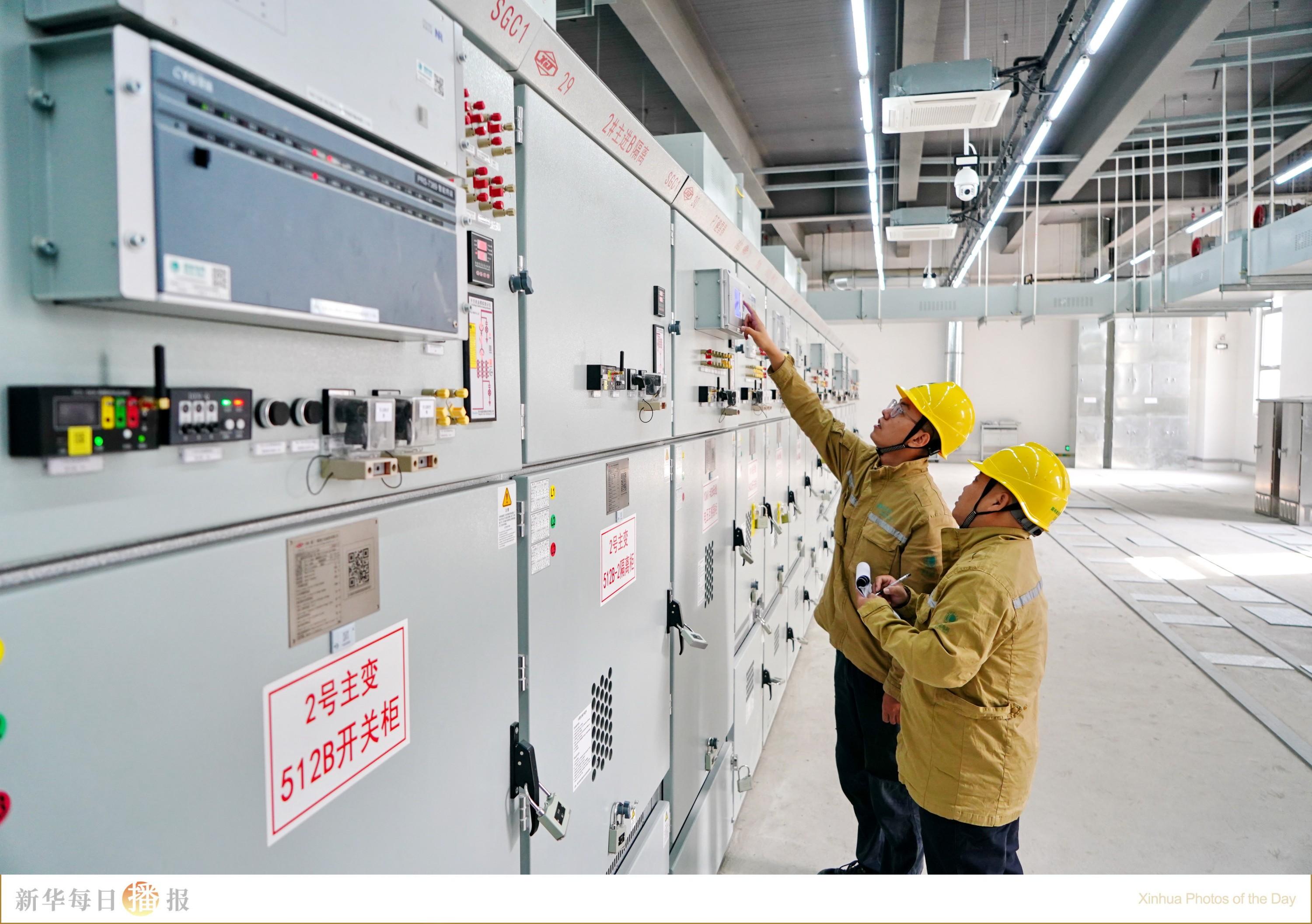 10月29日,国网雄安新区供电公司运维检修中心工作人员在王阳变电站设备室内记录设备运行参数。日前,雄安新区启动区内首座220千伏变电站——王阳变电站正式建成投运。该变电站的投运,可大幅优化雄安新区电网结构,提高启动区及雄县区域供电能力和供电可靠性。