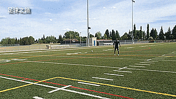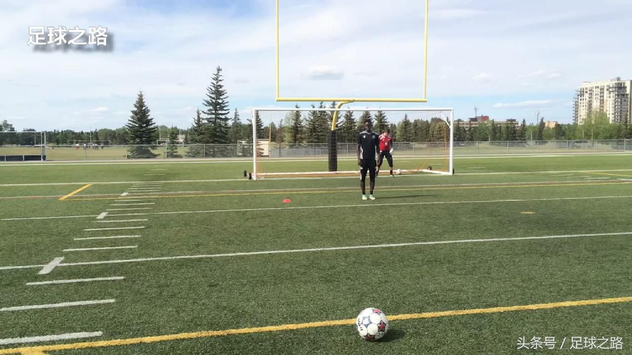 在另一侧也一样,让右侧的队员面向我站立,门将告诉他位置,让他和球还有门柱在一条直线上