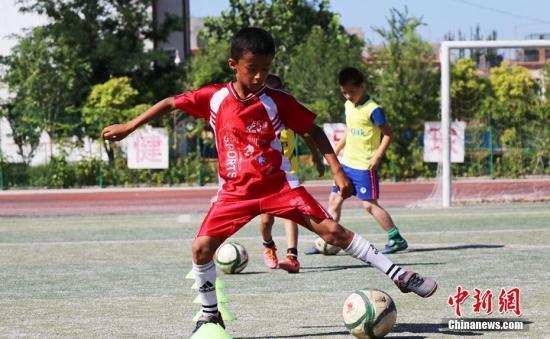资料图:青少年带球训练。 王小军 摄