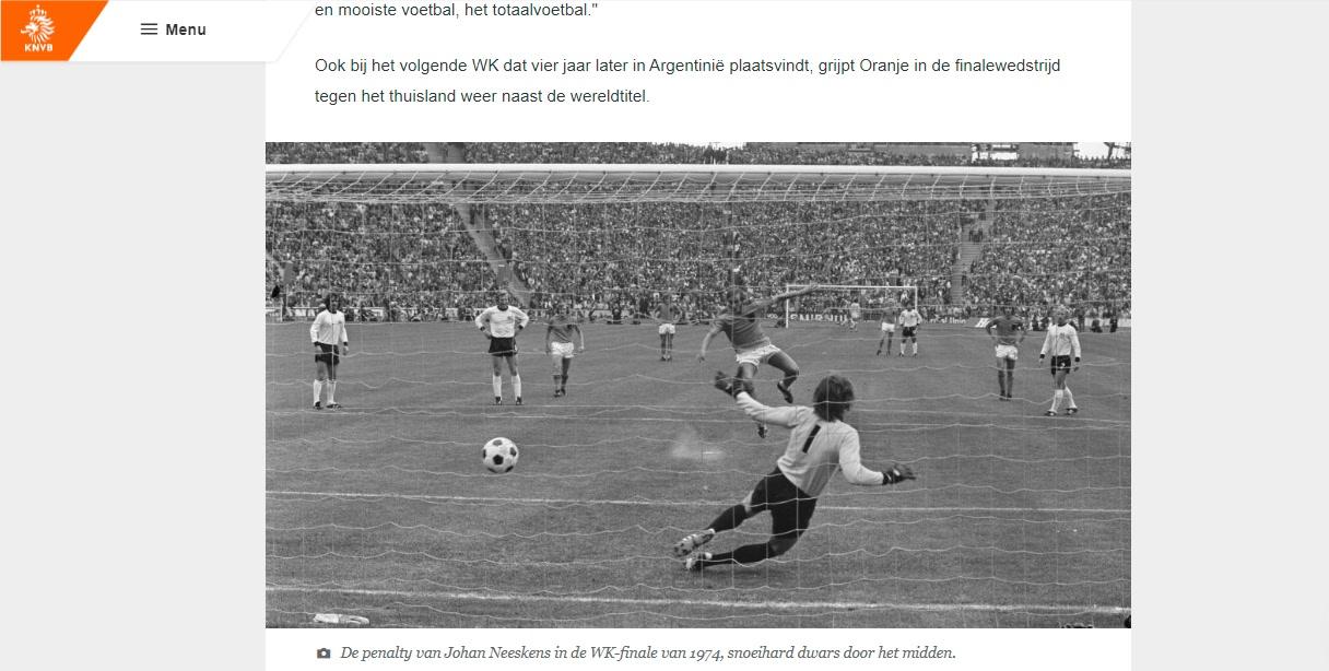 在“橙衣军团”,内斯肯斯更是见证了荷兰足球的激情与悲情。阿贾克斯的成功,让“全攻全守”和433阵型成为荷兰国家队的标配,在1974年世界杯,他们一路过关斩将,以不可阻挡之势晋级决赛。那场决赛第2分钟,内斯肯斯就罚进点球让荷兰队领先——直到这个球打进,对手西德队还没有碰过皮球。不过,此后西德队在贝肯鲍尔的率领下展现出极强的斗志,最终2比1逆转,送给荷兰队第一个世界杯亚军。