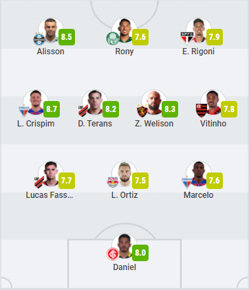 本轮过后,弗拉门戈前锋布鲁诺-恩里克继续以9粒运动战进球位列榜首,巴伊亚中锋吉尔伯托、巴西国际中场埃德尼尔森以9粒进球位居2、3位;红牛中锋伊塔洛排名第四,米内罗竞技核心胡尔克位列第五位。