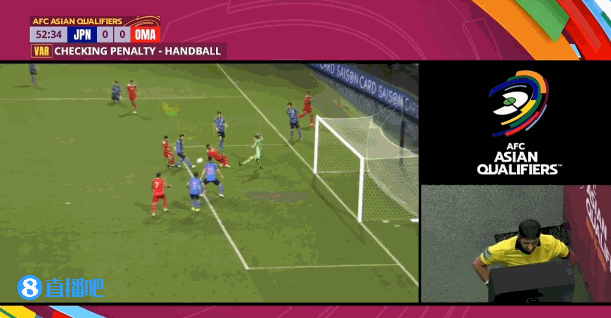 第52分钟,阿卜杜拉左路突破下底传中,长友佑都禁区内解围,主裁第一时间吹罚点球,在查看VAR之后,主裁取消点球判罚。↓