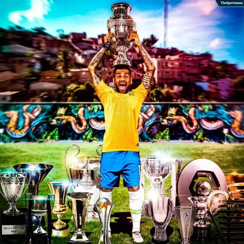 阿尔维斯职业生涯获得的奖杯数量也已经超过了40座,他是真正的人生赢家。