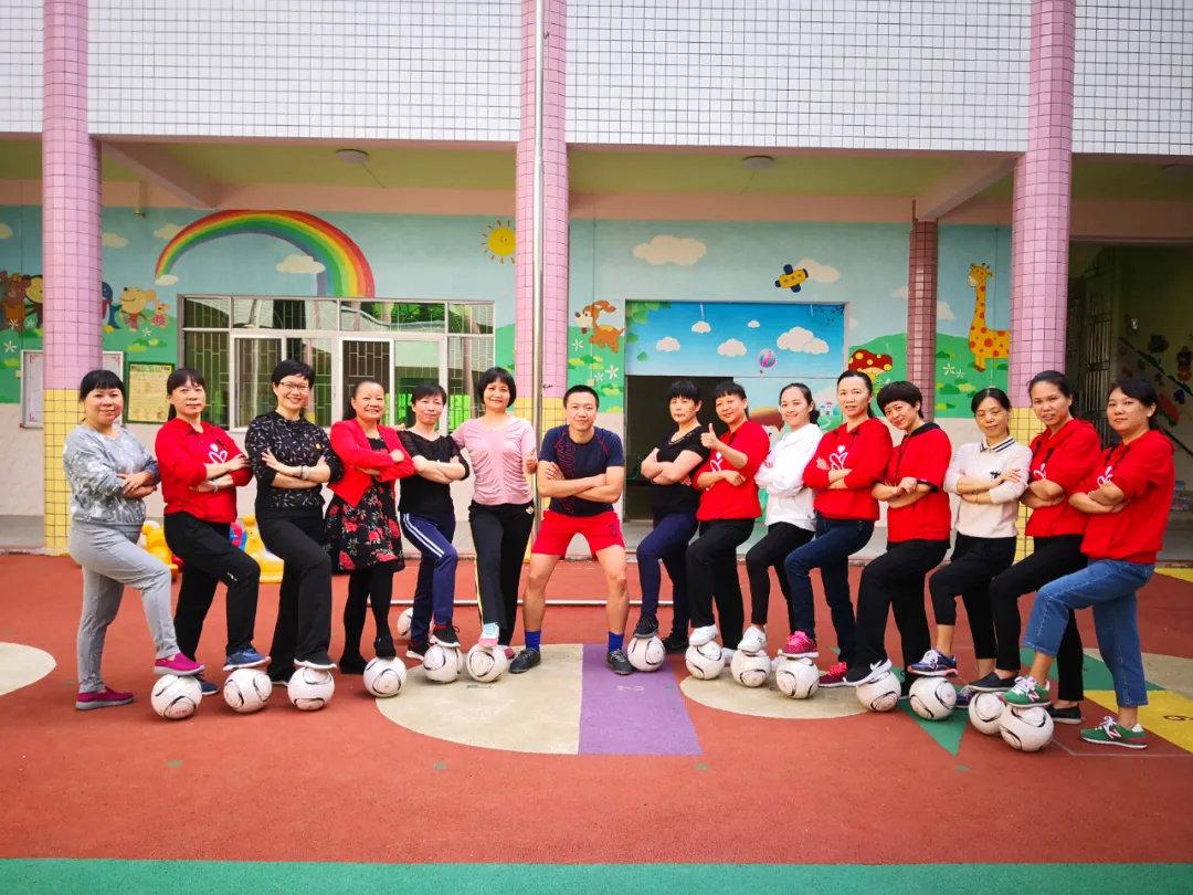 此外,张园长(下图红衣)还建立了基于游戏开展的幼儿快乐足球方向的课题,以课题带动老师钻研。有了技能训练,又有了课题作为目标,老师们就有了积极性,不断讨论、研究和解决在课堂上发现的问题。这也在很大程度上解决了曾经师资力量不足的困难。