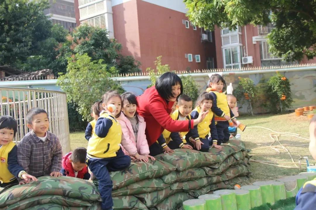 房志湘(下图红衣)是梅州市直属机关幼儿园张红园长费了“九牛二虎之力”才招来的专业足球教师。此前,园里一直都没有真正的足球内行。