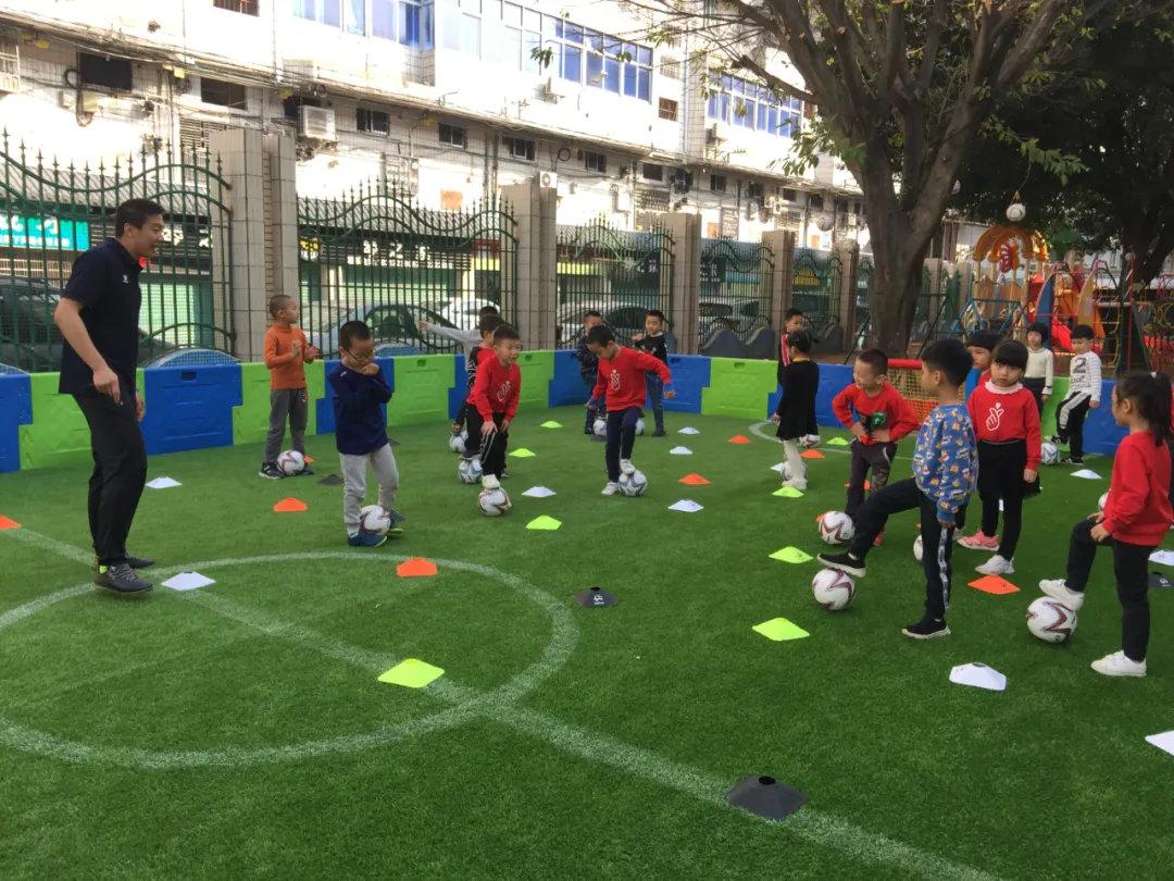 没现成的,就“创造”自己的足球教师。发展幼儿足球的路子,市直机关幼儿园走得非常坚决。张园长请来了第三方俱乐部的专业教练,不教孩子,毕竟太小了,这些教练的任务是培训园里的老师。从足球的基本知识,到动作要领,教练一点点教,老师们一点点学。就这样,市直机关幼儿园里的女老师们,也都慢慢有了自己的“绝活”。