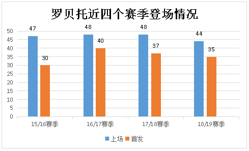 在15/16赛季,上场47次的他首发30次,16/17赛季上场48次首发登场40次,在17/18赛季中上场48次首发37次,在上赛季上场4次首发35次。 这稳定的出场数据彰显了罗贝托在队内的重要程度,可以看出他是目前队内的稳定球员之一,或许他的命运就没有转会之说吧。