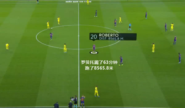 罗贝托无论是踢中场还是后场的活动范围都非常大,因为在拉玛西亚时期,他就是队中的进攻核心之一,能盘带能助攻,而且他是一个喜欢内切的中场,拿到球的时候往中路走,覆盖面非常大。不仅如此,他回防的力度也非常大,经常回追参与协防,巴萨最卖力防守的中前场球员除了格里兹曼就数罗贝托。他虽然在防守方面的贡献不如塞梅多,但是攻防转换出色的罗贝托十分重要,他提升了巴萨的攻防活力。2019/20赛季西甲第6轮巴萨VS黄潜,罗贝托63分钟跑动距离达到8565.8米,如果踢完全场跑动距离很可能达到12500米,这里面还有许多冲刺跑和加速跑,完全是一个长跑运动员的身体素质。