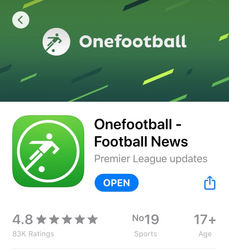 Onefootball官网信息显示,其平台用户量达5500万,其工作室Onefootball Studios制作的内容在Youtube、推特等多个平台发布,已有超过5000万人观看并参与互动。 在苹果的应用商店中,超过八万名使用者为它打出了4.8的平均评分,目前在英国区的体育类应用排行榜中排在第19位,虽然不及天空体育、BBC体育等传统体育媒体以及部分博彩应用,但已超过不少知名球队如曼联、切尔西的官方软件。