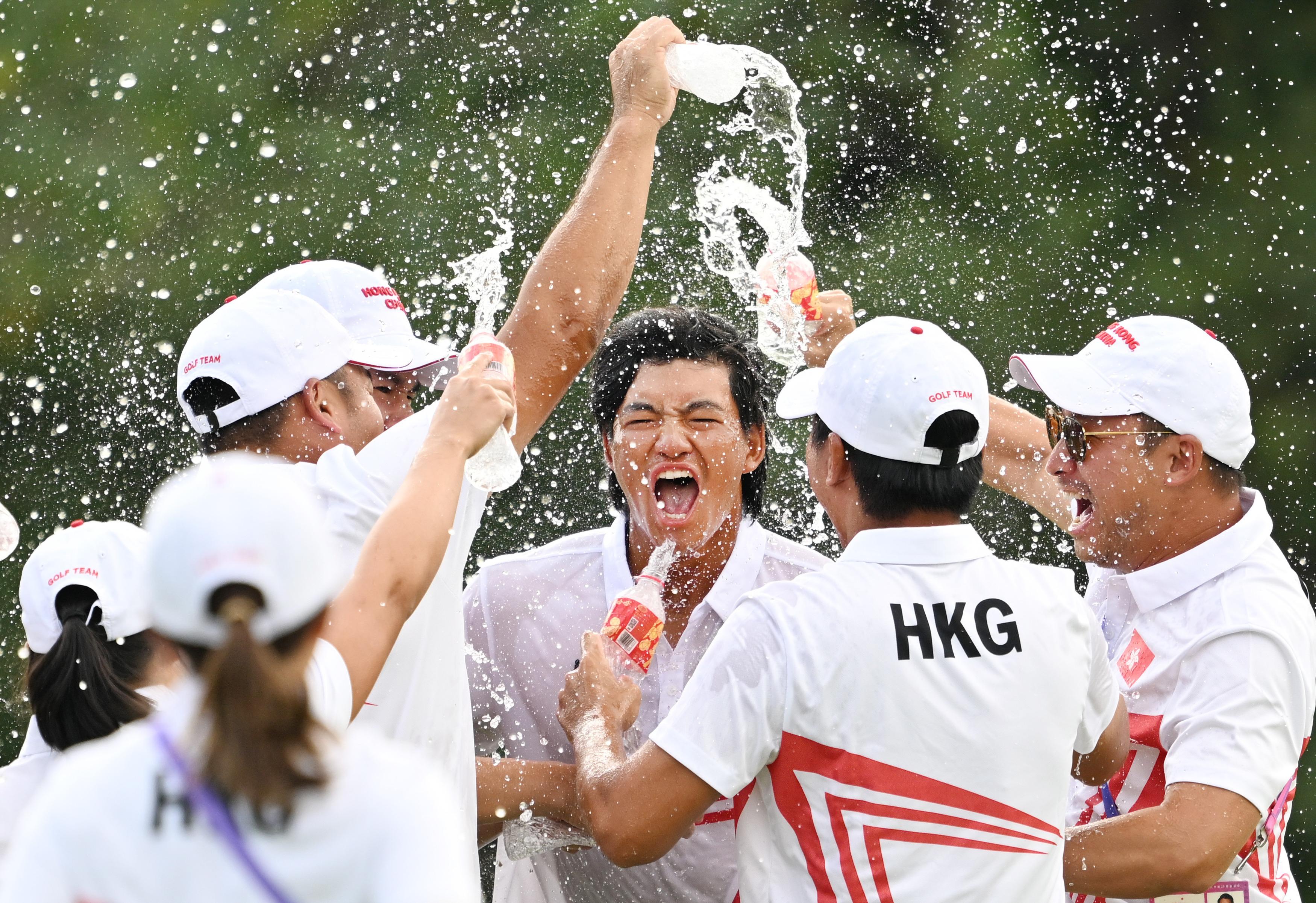 中国香港运动员许龙一夺得高尔夫球男子个人赛冠军,为中国香港队拿到第6枚金牌,并与队友张雄熙、黑纯一和伍城锋携手获得高尔夫球男子团体赛铜牌。这是自1982年高尔夫球项目进入亚运会以来,中国香港高尔夫球运动员首次取得奖牌。