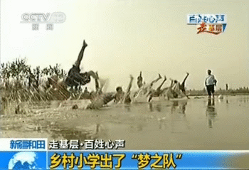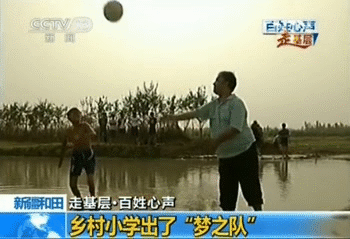 因为没有松软的草地,练习倒钩的孩子们只能选择一片滩涂地,在泥水中训练……而且,他们只有一个训练用球,三十多个孩子只能轮流上前,几乎小半个钟头才能轮到一次!