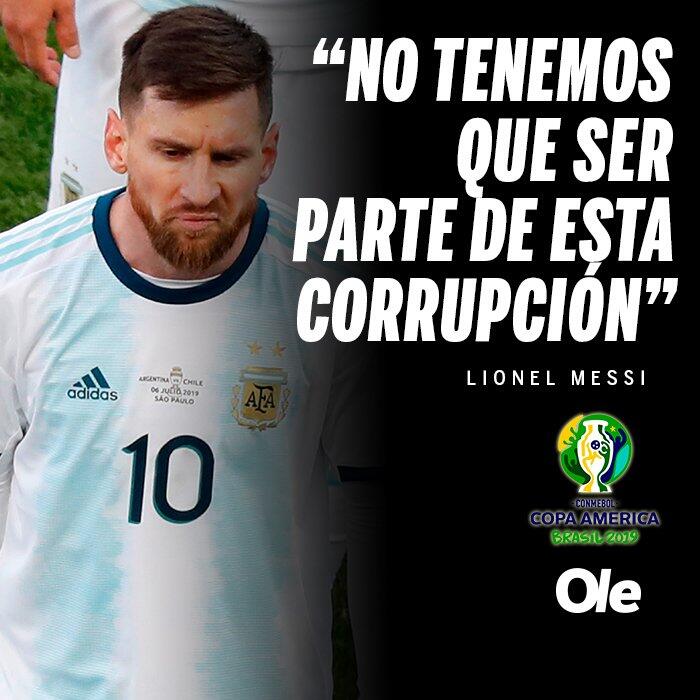 美洲杯季军战,阿根廷2-1战胜智利,梅西被红牌罚下。赛后梅西拒绝出席颁奖仪式,表示自己不想成为腐败的一部分。