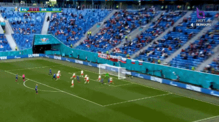 欧洲杯波兰vs斯洛伐克第18分钟,罗伯特-马克左边路一条龙,穿裆过掉贝雷琴斯基后爆射近角,皮球击中立柱后弹到什琴斯尼进入网窝。