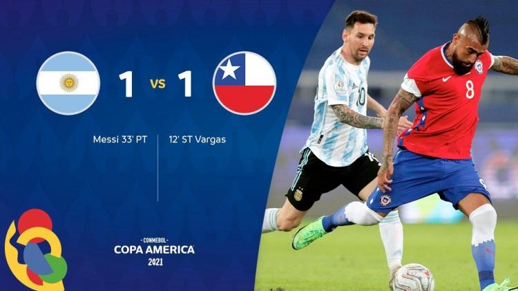 美洲杯A组第1轮,阿根廷对阵智利。上半场,劳塔罗和冈萨雷斯先后错失良机,梅西任意球直接破门.下半场,塔利亚菲科送点,比达尔射失点球但巴尔加斯补射打进,全场比赛结束,阿根廷1-1智利。