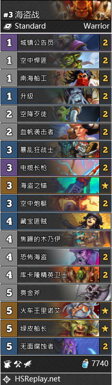 海盗之锚的削弱实际上对海盗战的强度影响比较小,毕竟卡组的进攻点不是橙武。最近的变化是有些海盗战又开始投入英勇打击了。既然和盗贼抢夺场面不是一个好办法的话,那就想办法直接通过武器伤害致死。高伤害爆发经常能让一个不能roll到泰坦跟班的贼暴毙。