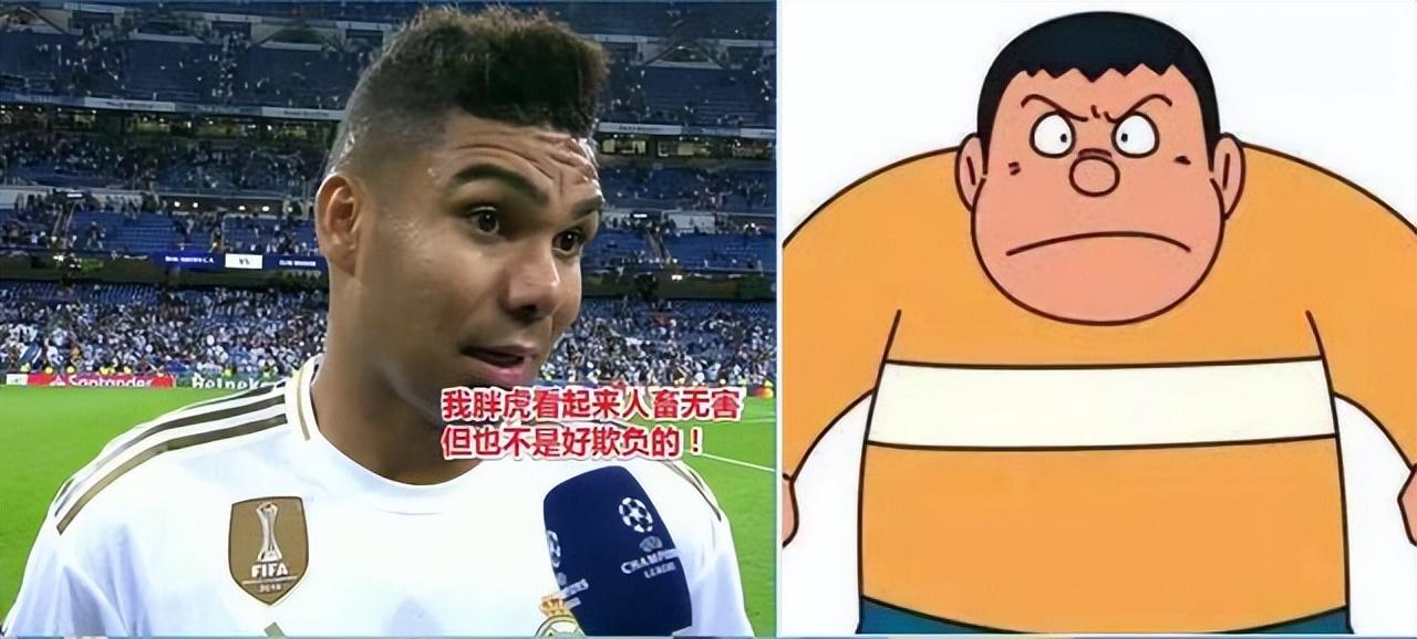 胖虎是动画片哆啦A梦里面的一个配角,长得五大三粗,经常欺负大雄,在足球界,胖虎指的就是皇马后腰卡塞米罗,卡塞米罗长得五大三粗,相貌与胖虎非常相似,于是,皇马球迷就开始叫卡塞米罗为胖虎,这个外号并不涉及讽刺,更多的是对卡塞米罗的喜爱!