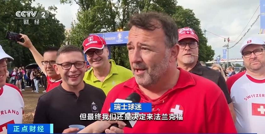 瑞士球迷:我们九个人从瑞士过来,就是为了瑞士队对阵德国队的比赛。虽然没有买到票,但最终我们还是决定来法兰克福,跟朋友以及世界各地的球迷,一起现场感受欧洲杯的氛围。
