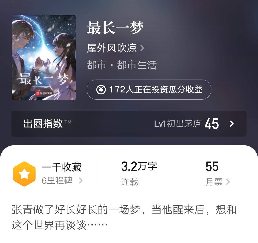 不过新书《最长一梦》写起了文抄公类型的都市重生文,算是换换思路了,就是不知道你是否感兴趣呢?