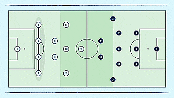 所以,每当对方的中锋回撤,将一名中卫带出防线时,这也使其他球员能跑中卫身后,直接打透由六名球员组成的低位防线中路。