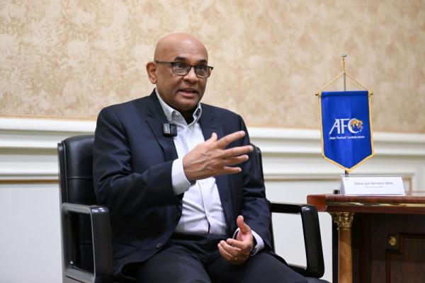 1月12日,亚足联秘书长温莎·约翰在多哈接受新华社记者专访。新华社记者 孙凡越 摄
