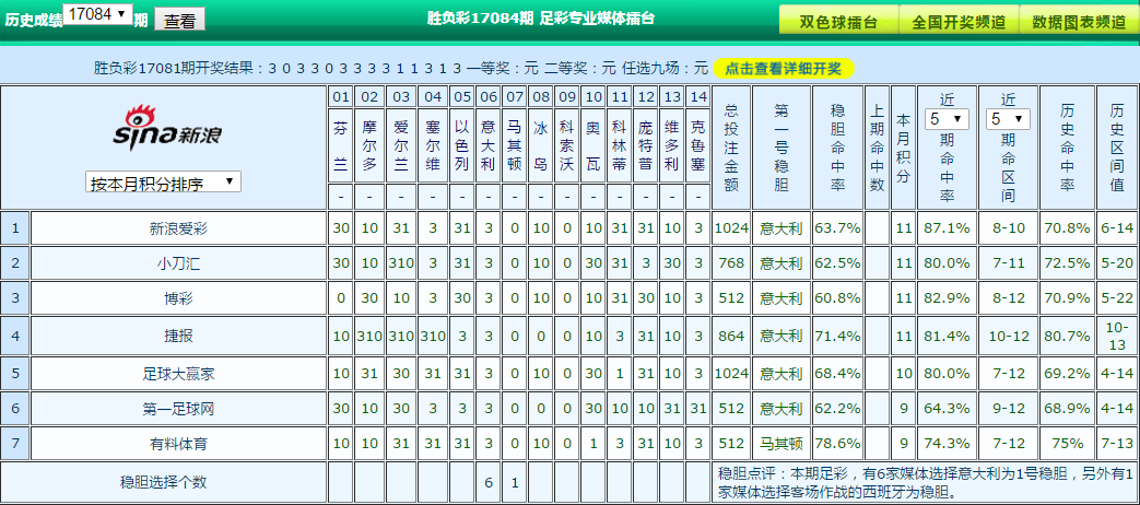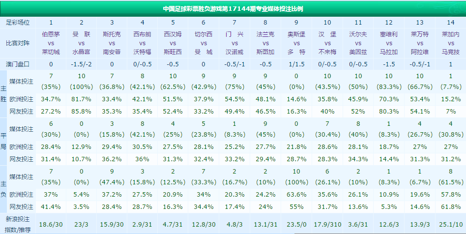 本期足彩稳胆选择不少,10家媒体里全部选曼联与多特赢球,9家媒体选择塞维利亚赢球,法兰克福主战应适当防平。