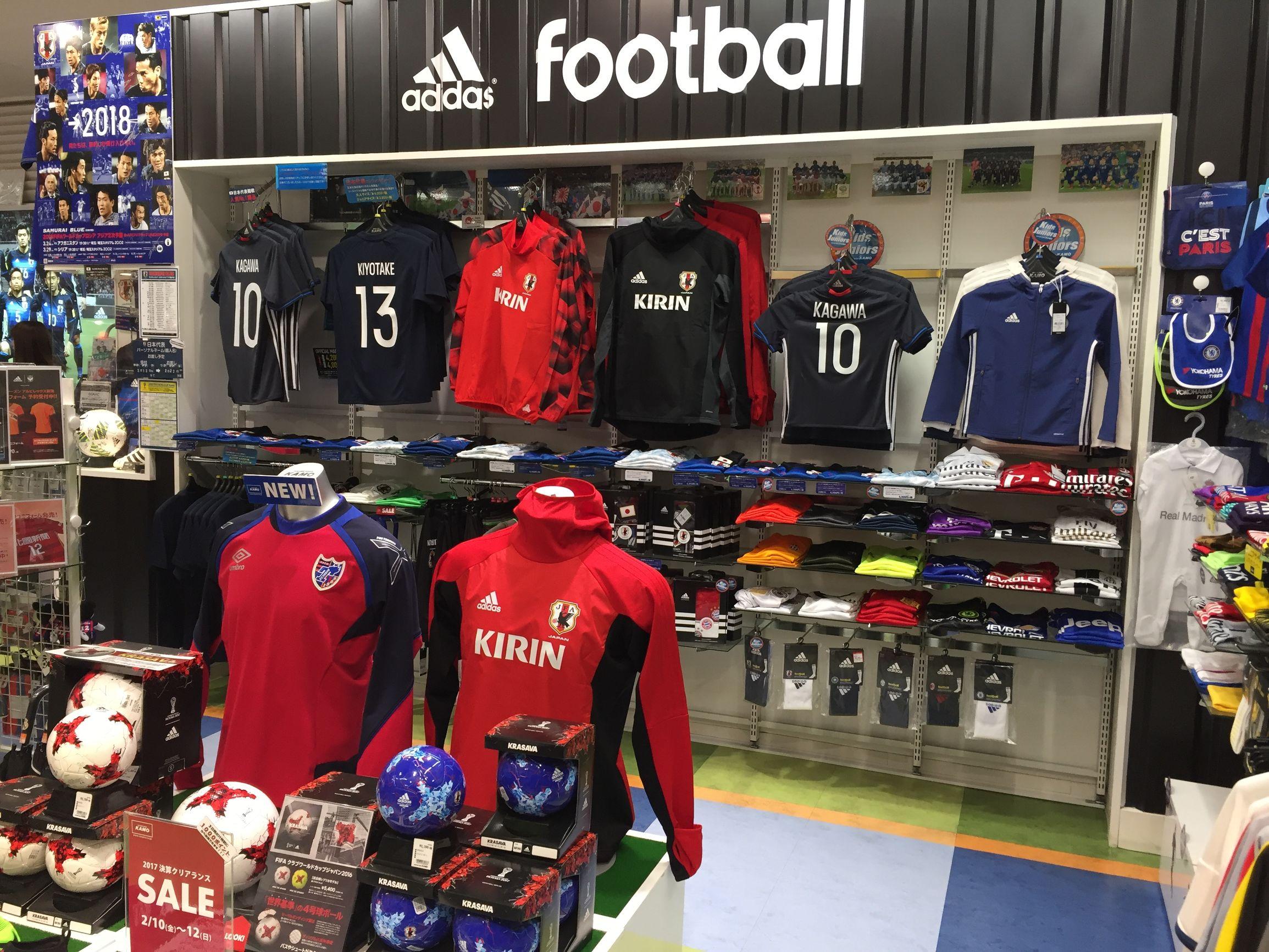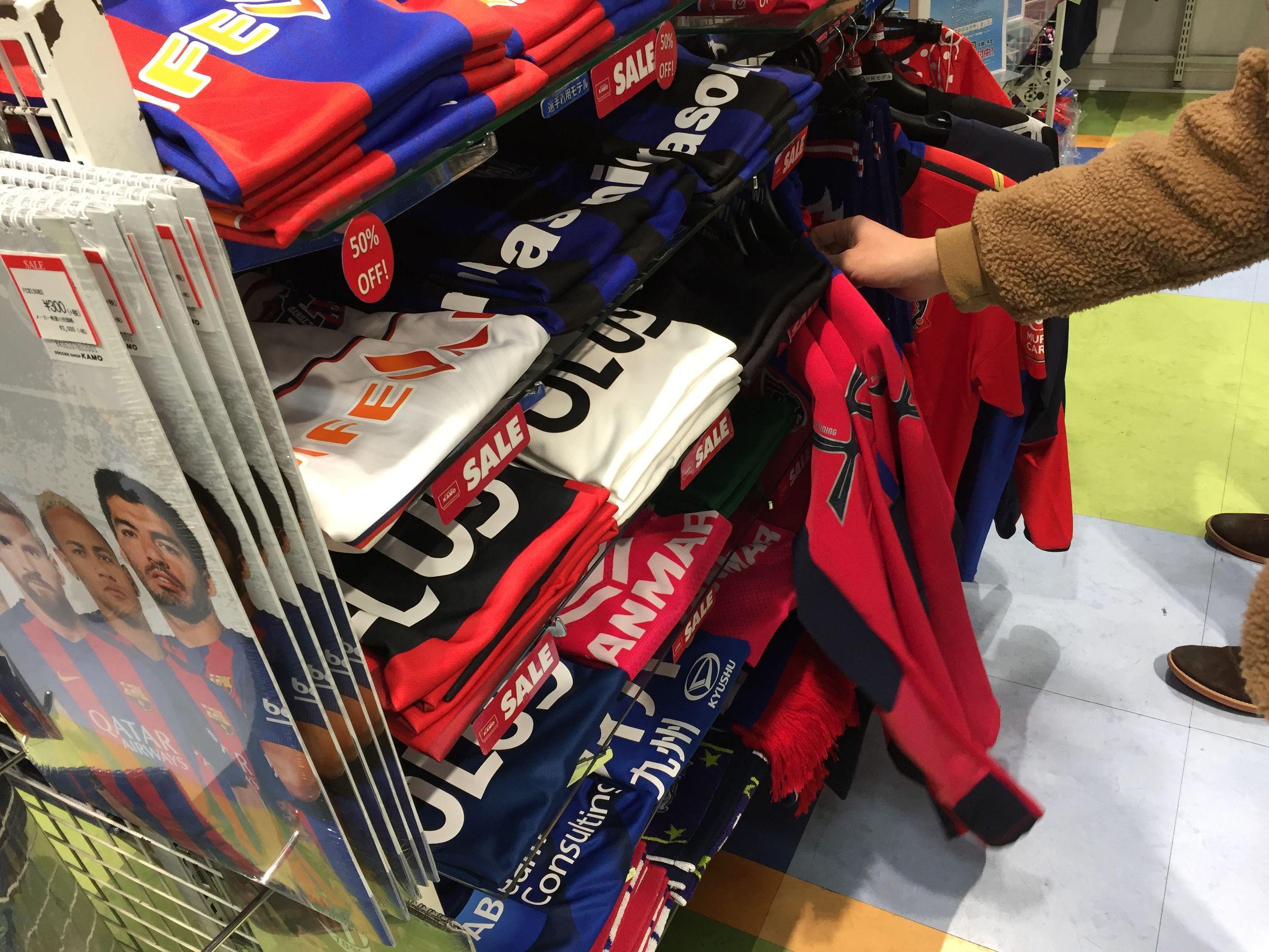 在我去过的所有店里,几乎都会包含J1、J2、J3联赛球队的用品,有些球队我都叫不上名字来。球衣、训练服、羽绒服、球迷周边商品、助威用品、纪念服(如大阪樱花升级纪念服)等一系列产品,只要你能想到的,基本都在这里码放。新赛季就要到来,现在所有所在地的主队新款球衣基本已经开始售卖,其他球队的球衣可以预订。