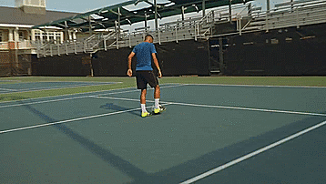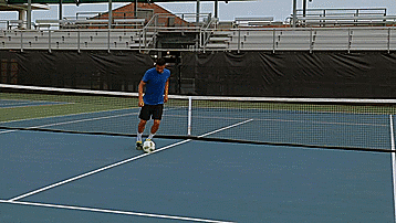 立刻移动我们惯用脚卷曲击球,用脚后跟击球越过我们和对手头顶,非常有效。