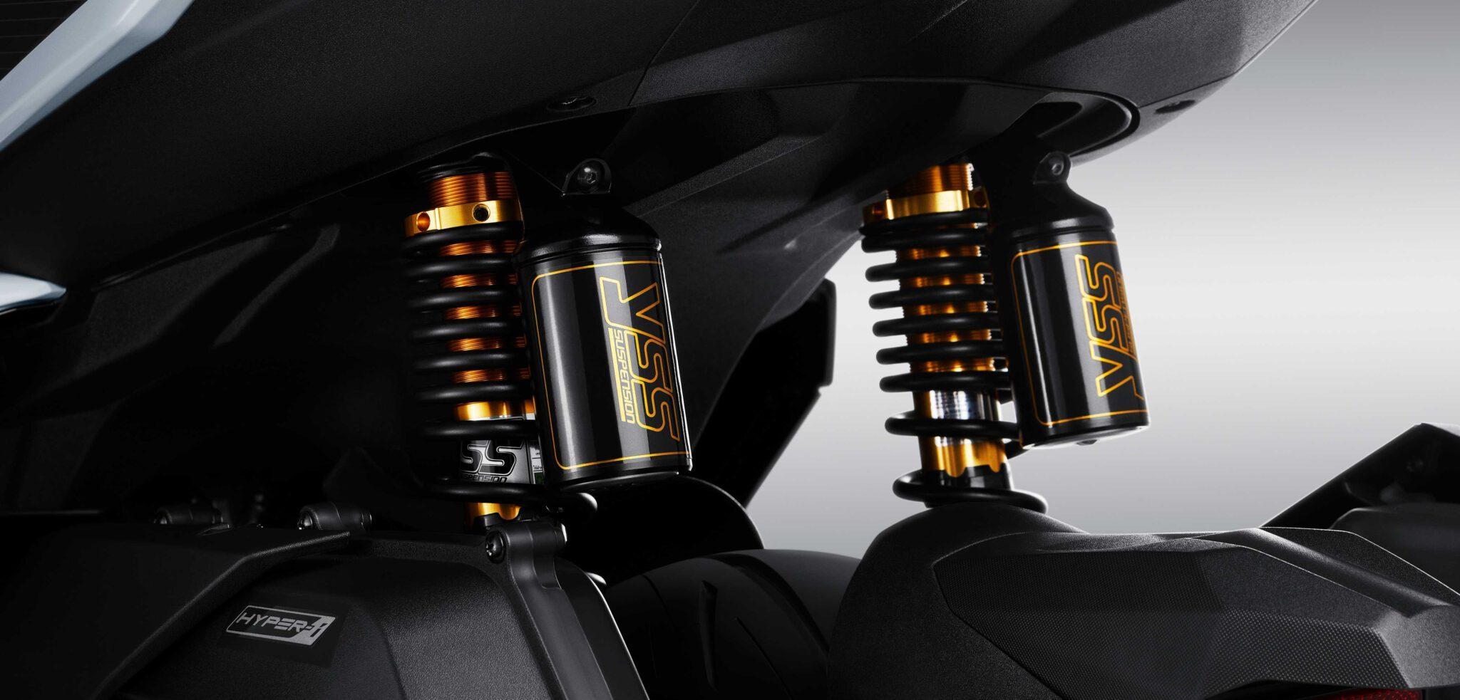 减震上DZ3同样采用前正立式双减震和后双液压弹簧减震,但是后减震由YSS提供的。国内很多XMAX300、NSS350车友在改装后减震时也会选择这个品牌,这倒是省去了后续改装的成本。刹车上前轮为双活塞卡钳配250mm单碟盘,后轮为单活塞卡钳配220mm单碟盘。
