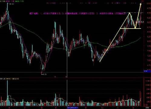 股票蝎子摆尾形态如何进行操作呢?从上面的图形了我们可以看到这种形态,其实就是典型的主升浪回调突破的形态,投资者如果错过了第一浪的上升之后,那么在股价回调到前面上升通道的三分之一支撑时,不破的时 就可以进行买入,这个是第一买点,当然如果觉得这个买点不安全的话,那么就可以等到股价放量突破左锋的高点时进行买入,这个点相对比较安全。
