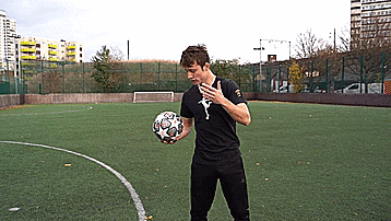 第一步,我们首先要做一个向内环绕地球,我们要通过向上轻弹来完成向内环绕地球,看起来就像下面这样,我们在起球的同时要向内环绕。