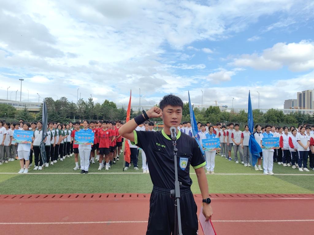 何校长致辞并宣布大会开幕。青岛市2013男子足球队、来自五年级四班的朱辰睿同学,代表全体运动员发言。