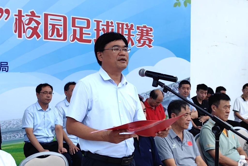 青岛市教育局副局长韩东,青岛市足球运动管理中心主任田卫国,青岛市校园足球协会会长管泽毅等领导及嘉宾出席活动并为本届联赛开球。
